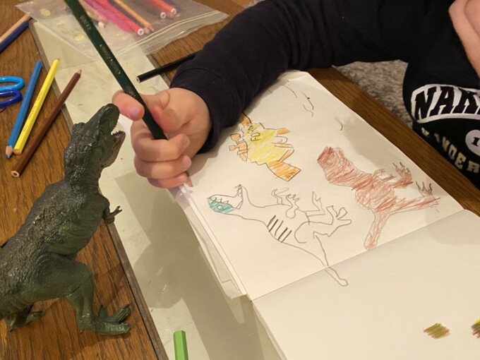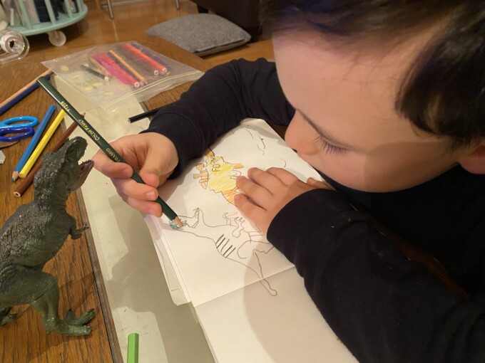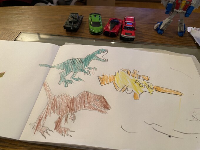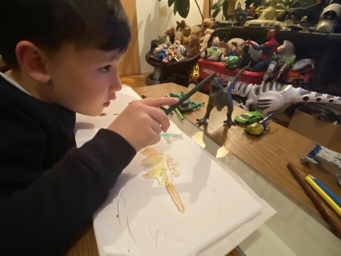 フィオンくん5歳は、恐竜とフォートナイトのガンがリクエストでした。かわいい。