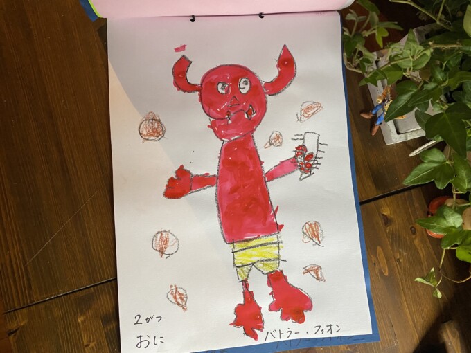 『昨日の節分の鬼の絵を描きました、昨日の記憶やフィオンくんのイメージで描いた鬼は