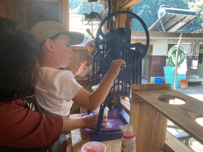 カキ氷作らせてもらったり、土間でゆずジュースを頂いたり。