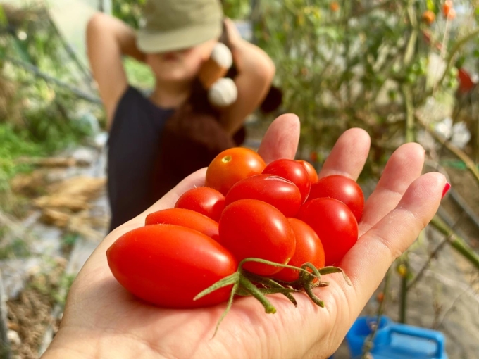畑にできてる無農薬のトマトもぜーんぶ採っていいよって言われて