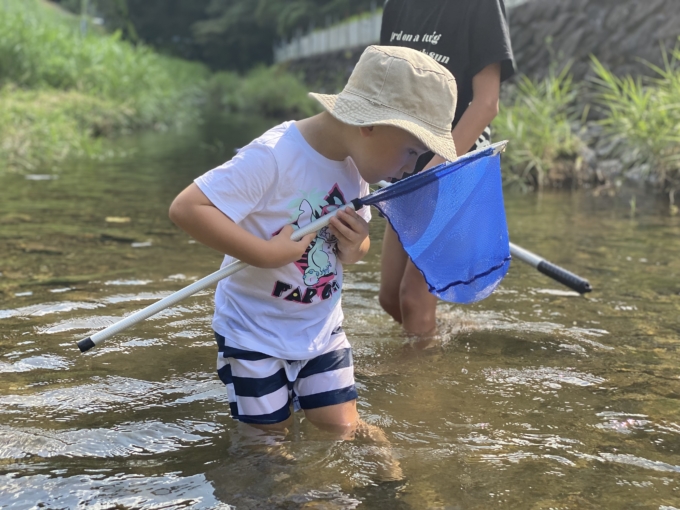 途中からはお家の前にある川でずーーーーーっとめだか取り。