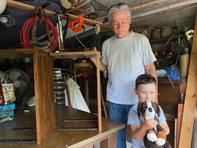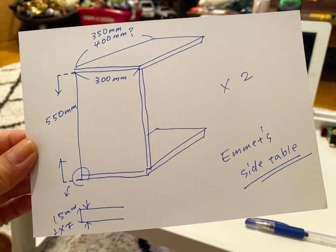 エメちゃんが父ゆきちゃんにオーダーしてたサイドテーブルがもう出来上がってきたよ!!!