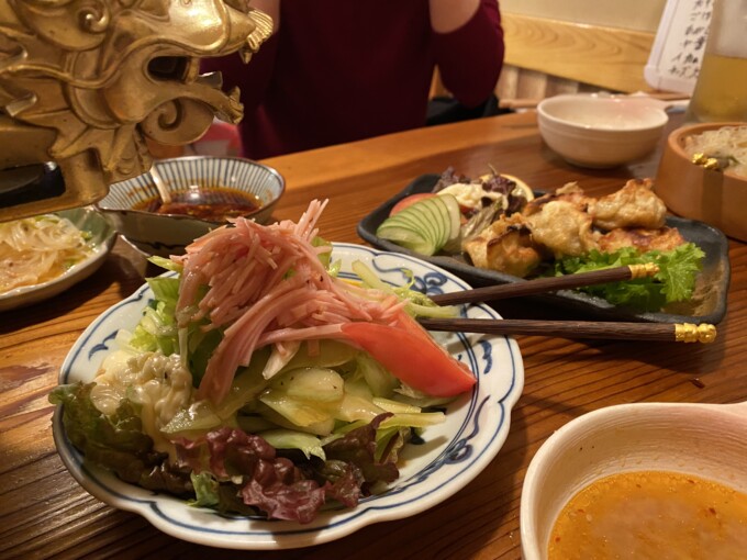 そうそう!これ春雨サラダなのかな名前はわからないけどすごくない!浮いてるんだよ!!笑