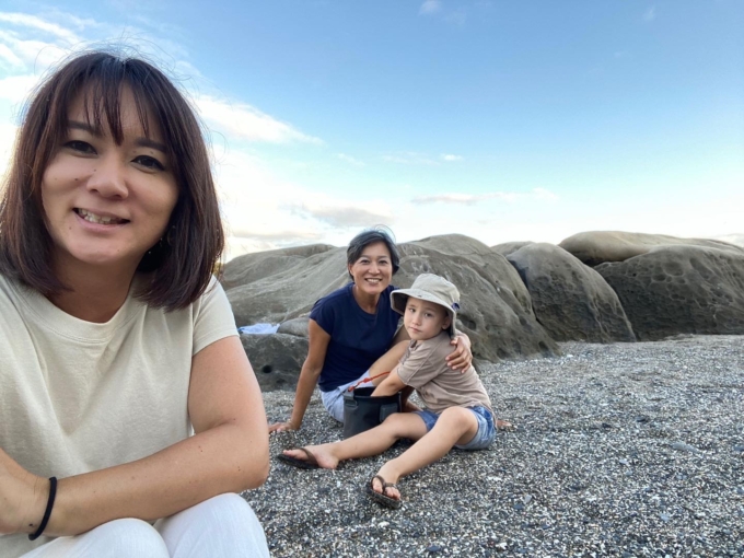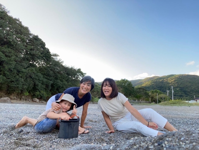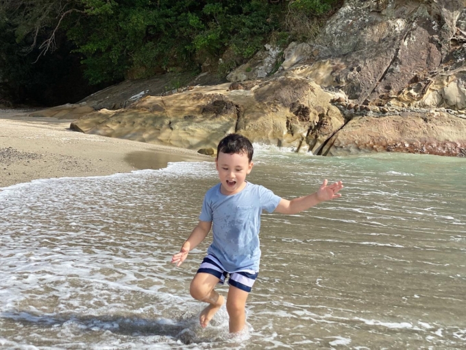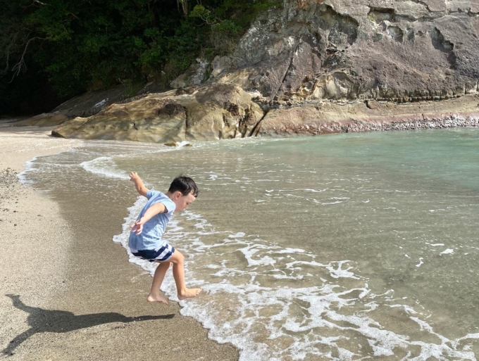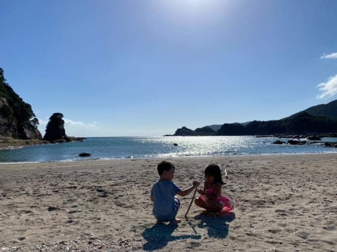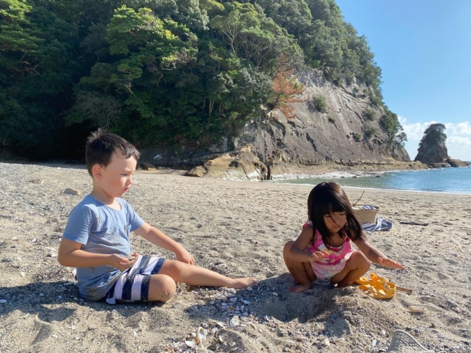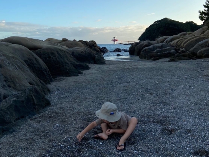 ふたりでサンゴ拾ったりお山作ったりかわいかったよ。