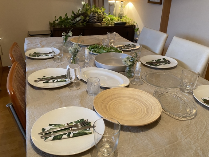 今日はオンラインでオーストラリアのK-martで買ったベージュのテーブルクロスに。