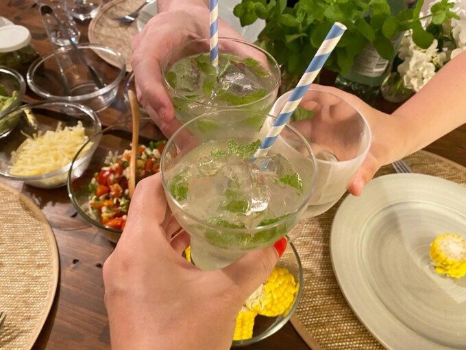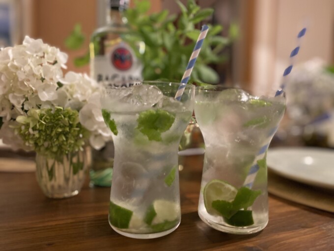 毎回モヒートを作るのはエメちゃんの担当で、わたしがお料理できあがる後半になると作りだしてくれてお食事完成したタイミングでカンパーイ!ってするやつ。