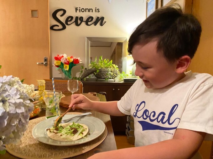 毎回タコスをするとフィオンの「ぼくが2人に美味しいの作ってあげるー!」っていうお決まりタイムがあるんだけど、今回も例にもれずフィオン作成タイムあり。