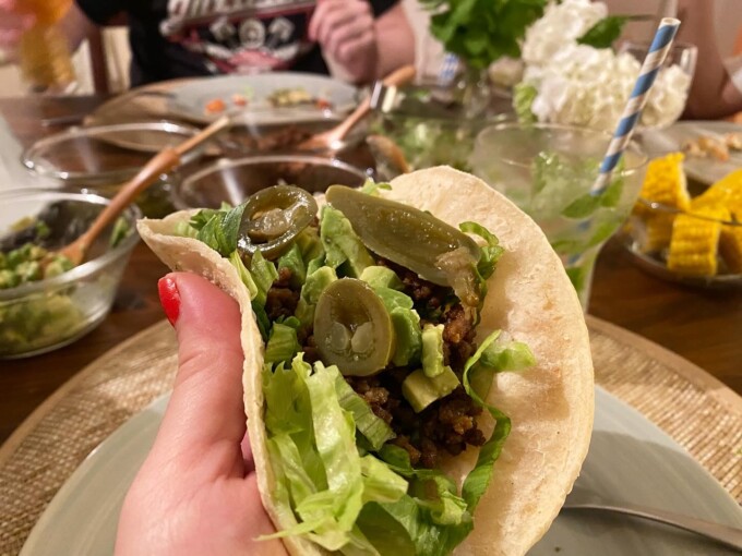 そして今回はどこで買ったか忘れた(きっとカルディー)けどコーンのトルティーヤだったから香りからめっちゃメキシカンだった!昔はよく業務スーパーで買ってたんだけど、なぜだか取り扱いがなくなってそれが一番の原因でバトラー家あんなに頻繁にやってたタコディナーの回数減ったのよね。