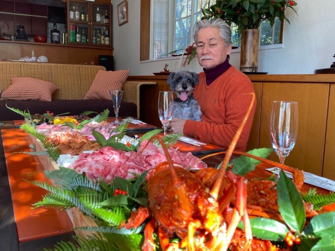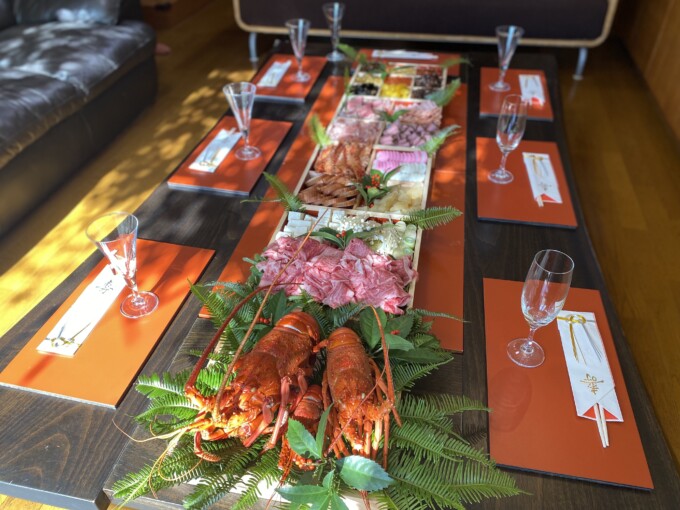 立派な伊勢海老の向こうに置かれているお肉は、次女まなちゃんの旦那さんが送ってくれたとってもおいしいしゃぶしゃぶ用のお肉!でも今日はお節でもうお腹いっぱいでそんな満腹で食べるのはもったいないので明日の夕方また家族集合でしゃぶしゃぶメインで堪能することに。