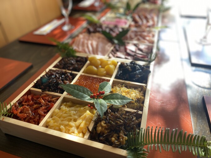 家族ですら去年まで知らなかったんだけど、毎年お節を入れているお重みたいなもの(その年によっては個々にあるボードも)はその年用に作っているらしくて今年は初めて白木の箱で内側に朱色の塗りのあるものだったよ。新鮮!