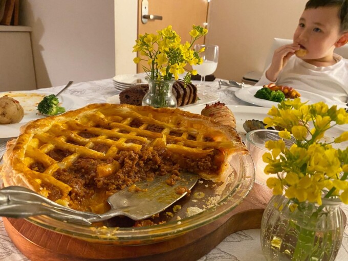 お食事のメインはミートパイ!!