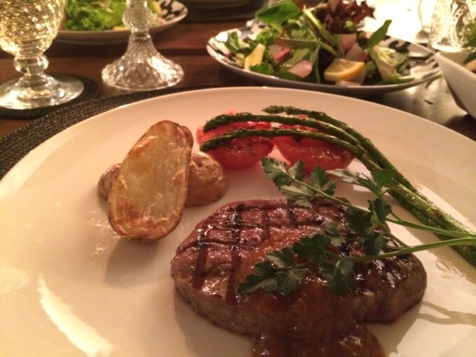 ディナーは日本式になって女子から男子へのバレンタインになった年らしくわたしが作ったステーキだね。