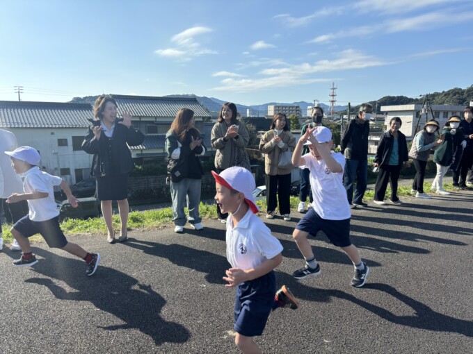ですがうちの息子さん、ここまずスタート地点からまだ30mくらいのところだけどこの時点で最下位でしたww 聞いてみると、みんな我先にとスタートライン近くの前の方に前の方に行くけどフォインはぜんぜんそんな先頭グループに入る気がないから進んで後ろにいたそうです。