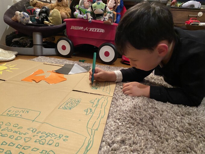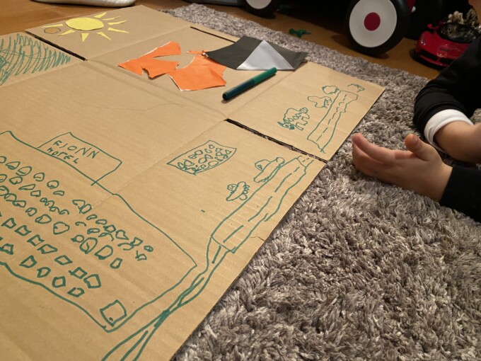 見えるかな?大好きなホテルを描いてそれを「FIONN HOTEL」と命名していました。