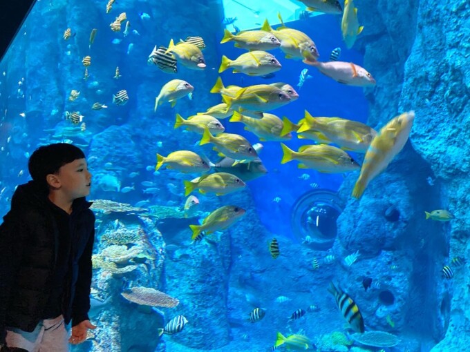 3連休何もしないのもかわいそうだなぁと前日に明日どこか行きたい?って聞くと即答で『Aquarium!!!!!』と言われたので本日行ってきました。ちょうどお天気すんごい良くてポカポカだったからお出かけ日和でとてもよかったのよね。