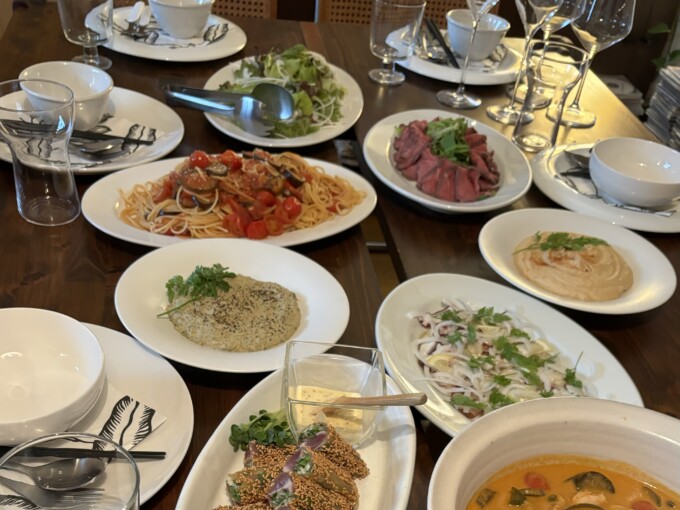 こうやってテーブルにお料理並んでみんなのお皿やグラスもあって食べてる途中のテーブルみるとまぁまぁ圧巻の量よね!これを3時間くらいで1人で作ってるわたしってすごいわ!!(自画自賛w)