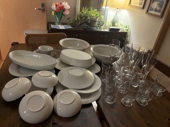 洗った食器を拭いて、テーブルに並べて充実感マックスなのだーw