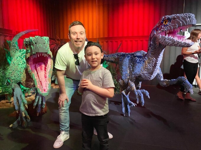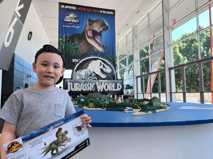 今日はナナが見つけて買っておいてくれたレゴで出来たジュラシックワールドのエキシビジョンを見ににシティーに行ってきたよ。車でお家からだいたい40分くらいだから中村のお家から竜串の水族館に行くくらいの距離かなぁ。