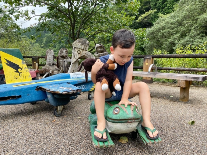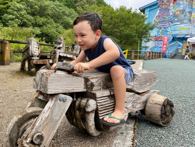 最終的に一番気に入って一番長く遊んでいたのは外にあったこういう木の乗り物。