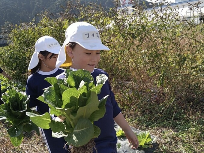 写真は少し前にフィオン達年長さんが『輪』っていう食育の支援してくださっているグループの方たちと一緒に秋の収穫をしたときのもの。スケジュールに記録してなくてわたしは行ってなかったけど、行っていたママ達がお写真撮ってLINEで共有してくれたのよね。ありがたいわ。楽しそう!!
