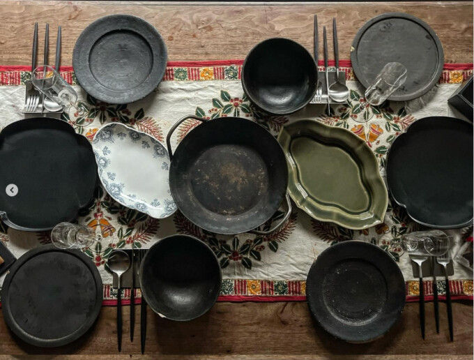 プラス、このセンターというかクロスというかで使ってるやつも素敵!!これがあるからこのダークな色の器もまた映えるよね。高度だからなかなか真似できないけど、暗い色の器も実はたくさん持っているから今度挑戦してみよう。
