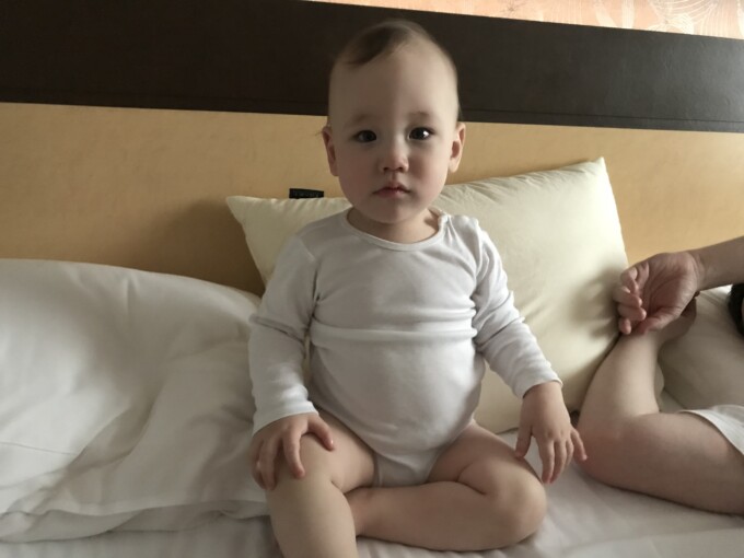 これちょうどこのディナーした日の楓くんと同じ、1歳と5日のフィオン。市内のお友達と大集合(この時の3枚目の写真)してその後ホテルに泊まった時の写真だ!