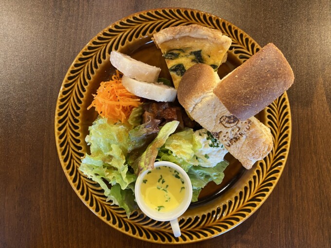 どうしてだかおしゃれなインスタグラマーとかの真似をして上から撮って失敗しているけど、エメちゃんは逆にはじめてのランチキッシュプレート。