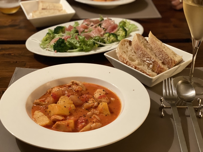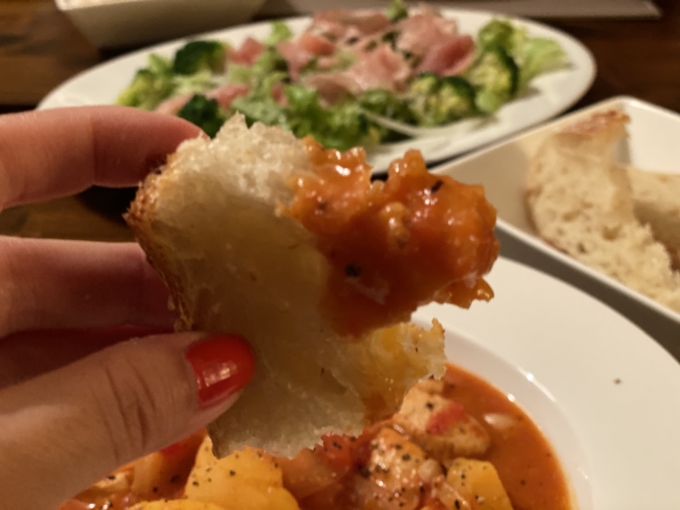 しかもさ、このチキンクリーム煮もカンパーニュも同じお鍋で作られてます!