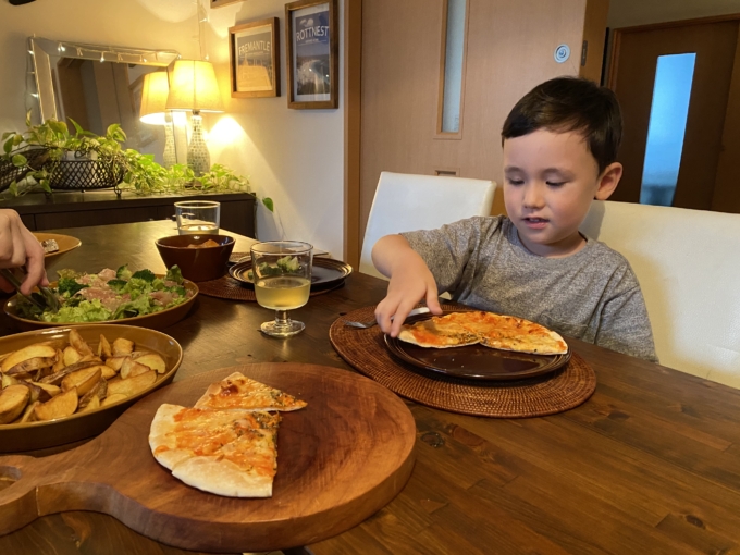 フィオンはね、昨日は一緒にクリームトマト煮食べてたけど今日はピザがいいって