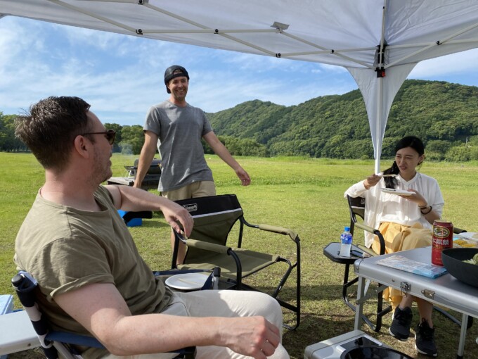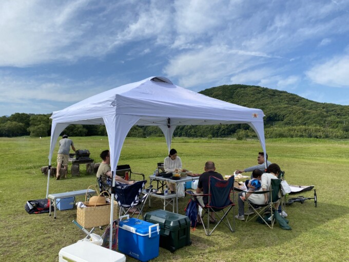 新しくタープテントも買ったらしくてそれセッティングしてくれてたから