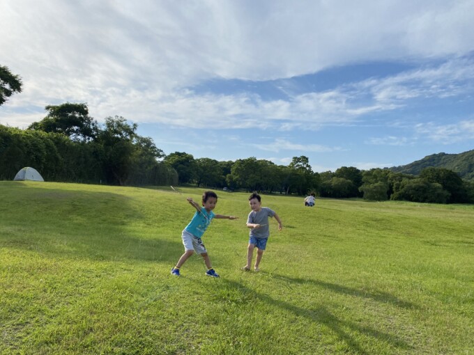 もうねノンストップで走って追いかけっこして虫探ししてたまに喉乾いたってジュース飲みにくるくらいで