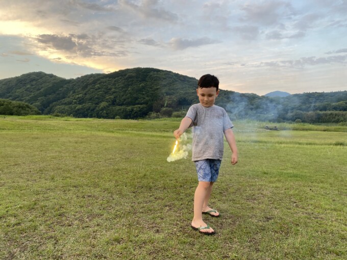 こどもたちが楽しそうに花火したり走り回ったりしている姿を見てしみじみエメちゃんが