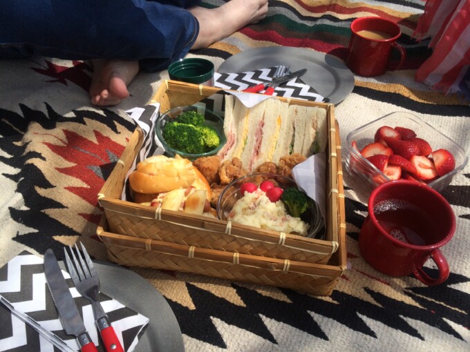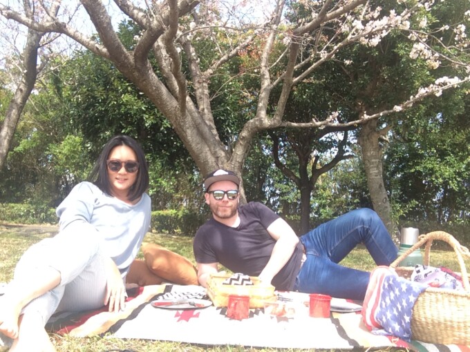 桜がまだあまり咲いてないけど、春いお花見ピクニックに行った時だとおもう。