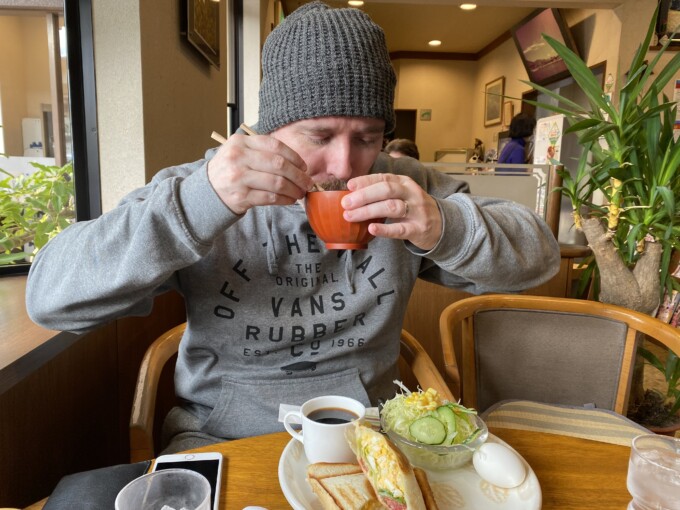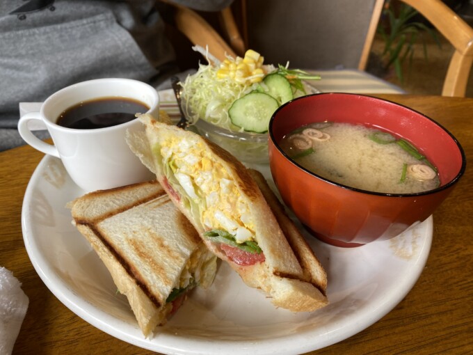 だから今月はまだ2人で外食ランチは1回だけ!しかもリーズナブルな「かもん」っていうお店。でもここ早くて安くておいしいから人気なんだよ。そこでエメちゃんはホットサンドをオーダーして。