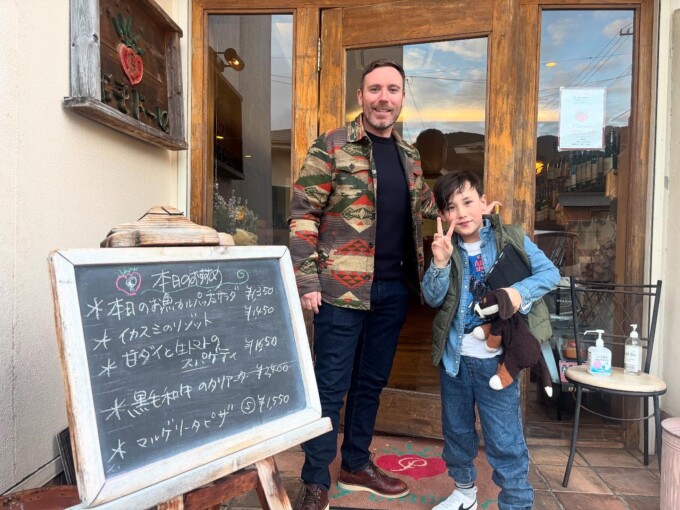3人ですぐ近くのレストランに行ったよ!