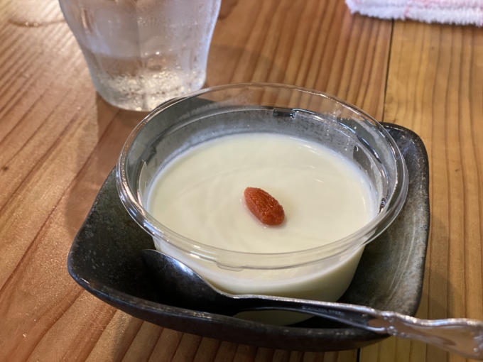 めっちゃおいしかったって言うから2人で食後は杏仁豆腐。