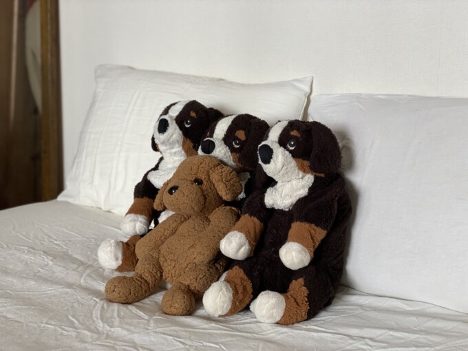 シーツやカバーが変わるとフィオンがすごく気持ちいい!って喜ぶんだよね。