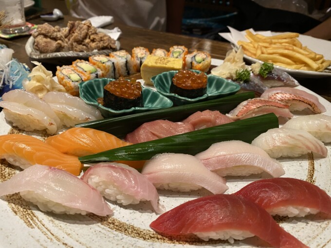 もうちなっちゃんママが先にいろいろオーダーしてくださっていたから着いたらすぐにどーーーんとにぎりの盛り合わせや、お刺身や、おいしいものたくさん!最高!!!