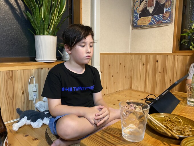 食事先に終わって持って来たipad見てるフィオンがもう小1には見えないんだけどw 貫禄は小6くらいない???笑