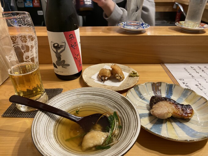 ちょうどね、年末に山形から遊びに来てくれてたタマちゃんにもわたしたちと会った次の日用にオススメのお店で三保木くんところを紹介したら、そこでお話弾んでそのご縁で山形の酒屋さんと繋がっていてそこからいくつかおいしいお酒を仕入れていたので、おいしい山形の日本酒を頂きながらの楽しい再会だったよ。