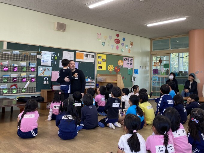 校舎が新しくなって年中さんの時は新校舎でのクラスだったけど年長さんだけ昔の建物だからわたしも年長さんの時に使った教室で、しかもエメちゃんの英語クラスを参観してきました。