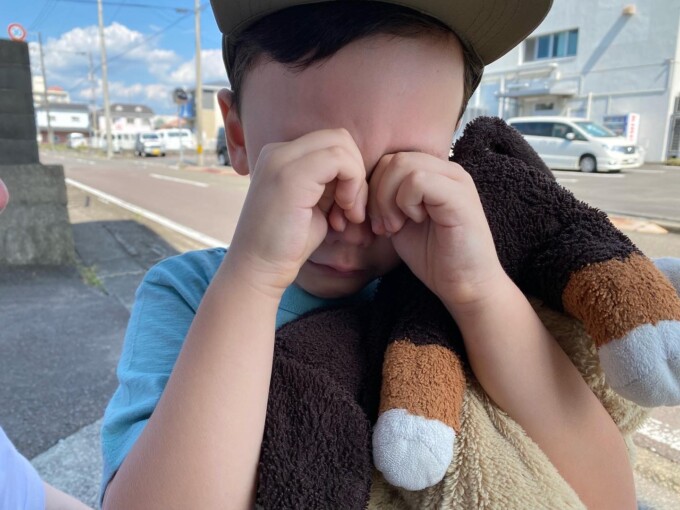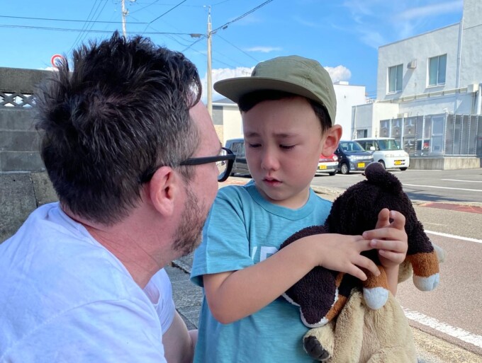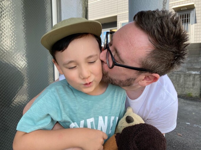 Emmet couldn’t come this time because he had to work. Fionn was so excited to get ready in the morning to leave for Osaka, but when it came time to say goodbye to Dad, he was so so sad, he couldn’t stop crying.