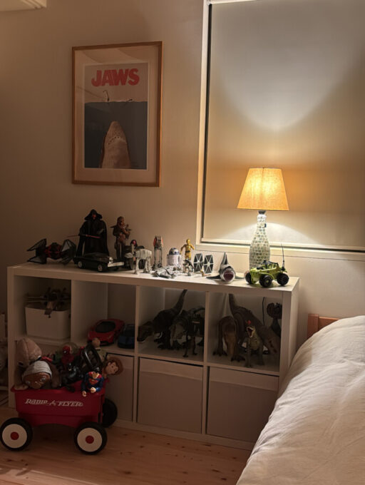 今はベッド横にIKEAの棚を購入しておもちゃもだいぶ片付いたよ!