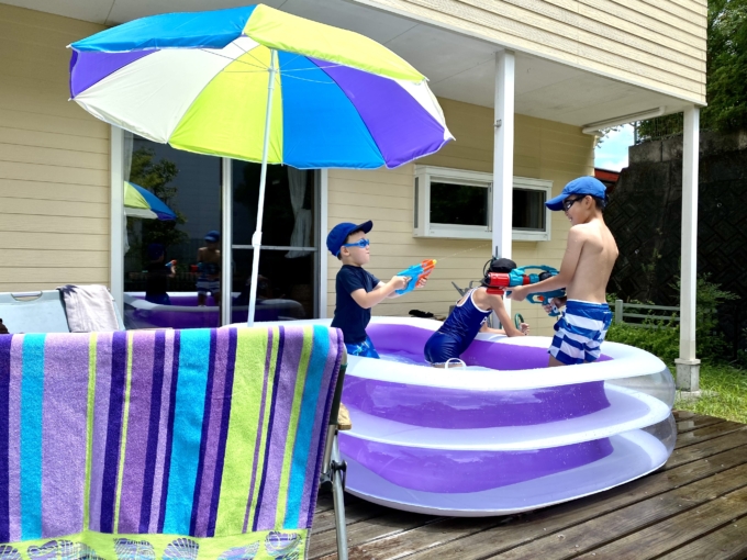 妹が今年はプール系をパープルでコーディネイトしてて、そういうとこにもこだわるところ感心。