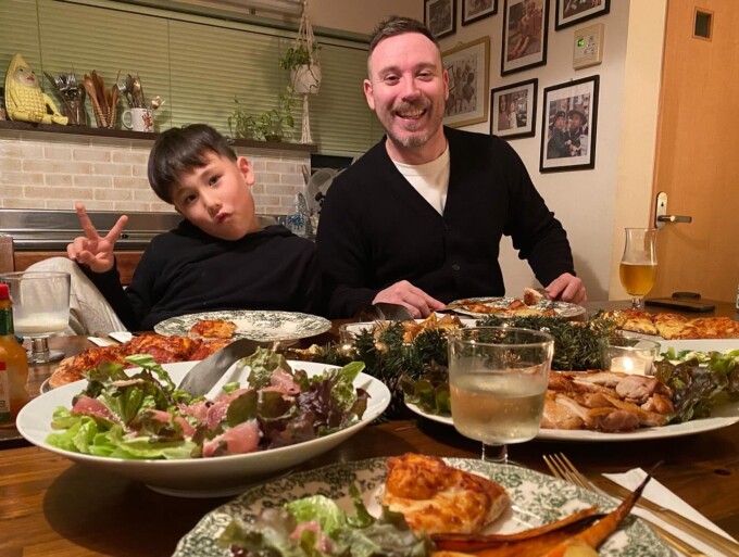 急遽ピーターが風邪がひどくなって来れなくなったのと、アルヴィンも高知から戻ってくるのが少し遅れそうっていうのでまずは家族で乾杯!!