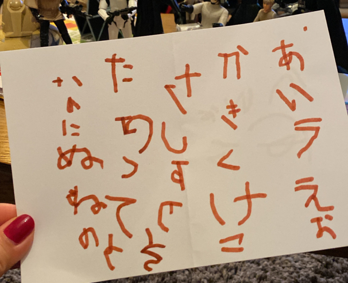 園長タイムで「あいうえお かきくけこ」を言う練習があるらしくてかなり得意気。