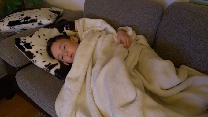 今日のはそこまでひどくなかったからお薬飲ませず寝かしたけど(というか、ソファーで寝落ち)