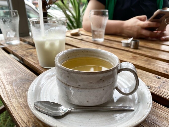 ちょっと雨も降っていて肌寒かったから絶対これ!って思って頼んだら、またこれがパンチの効いたジンジャーでおいしかったの。そうそう、お会計の時に気づいたけどドリンクはメニューの価格から200円引きだったよ。ありがたい。