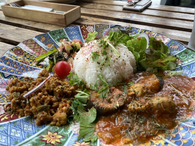 行く前からメニュー知っていたからどっちにしようかすんごい迷っていたけど、聞いてみたら「あいがけ」できましたぁ。そうだよね、インスタに登場しているのあいがけばっかだったよw あいがけ最高!!!後半はもうお野菜もぜーんぶまぜちゃって味変もして満足満タンで終了。ゆなちゃんとちあきちゃんはキーマめちゃめちゃおいしい!って言っていたけど、わたしはナスチキンも超超好みで、とにかくすんごいおいしかった!!こういうスパイスけっこう効いたカレー大好きだわぁ。