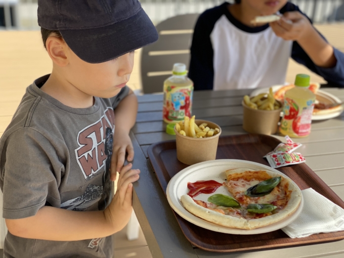 これはSATOUMIの中にある小さなカフェCurrentでオーダーしたポテトとマルゲリータ